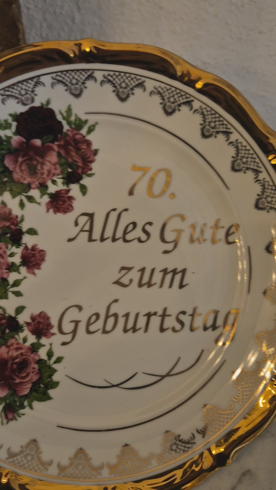 Feiern Sie den 70. Geburtstag mit diesem charmanten Vintage-Porzellan-Teller! Ein liebevolles Erinnerungsstück, das jeden besonderen Moment würdigt und Freude auf den Tisch zaubert. Perfekt als Geschenk, um diesen Meilenstein spielerisch und stilvoll zu feiern.