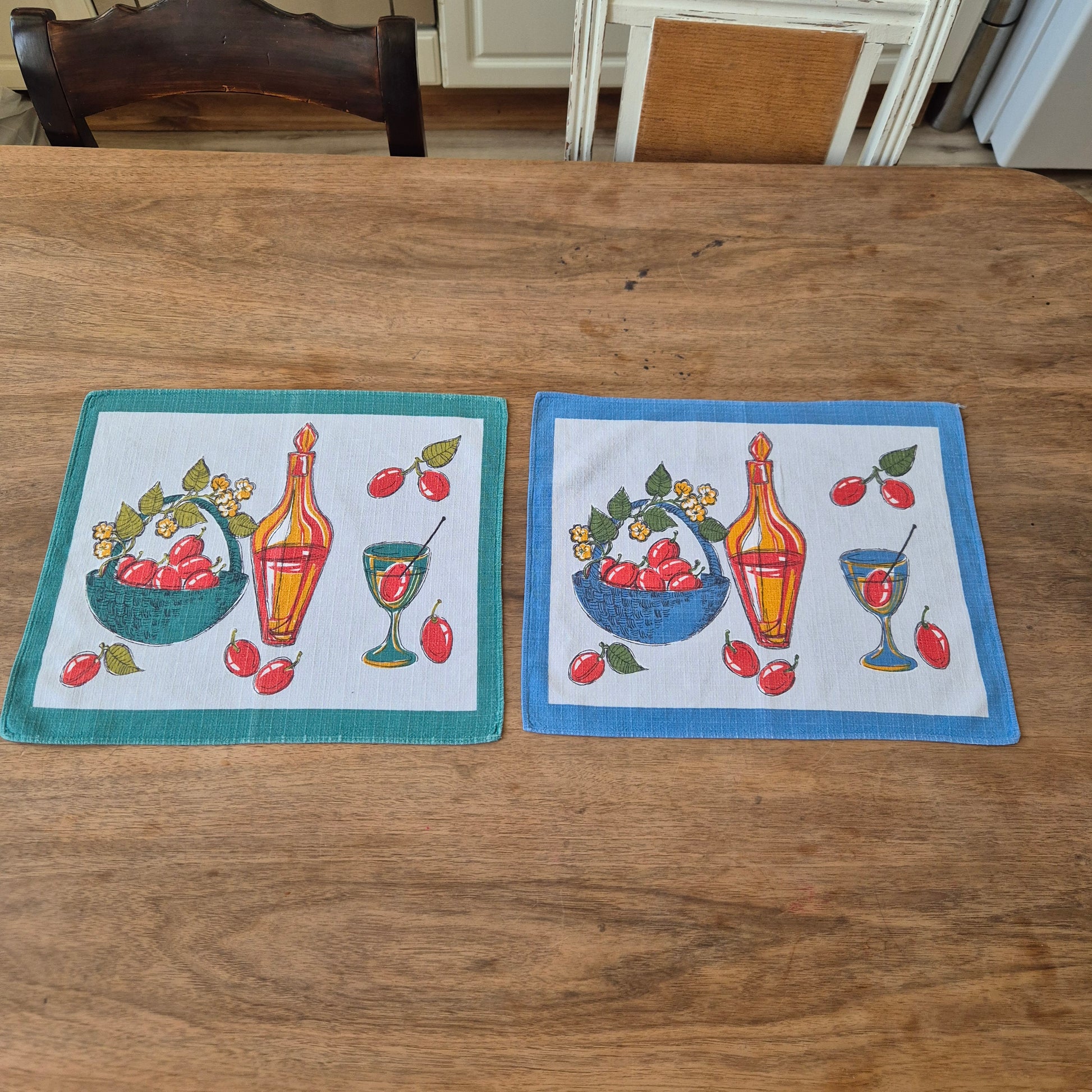 2x Vintage Tischset Baumwolle 60er Jahre 30x37cm Herbstmotiv