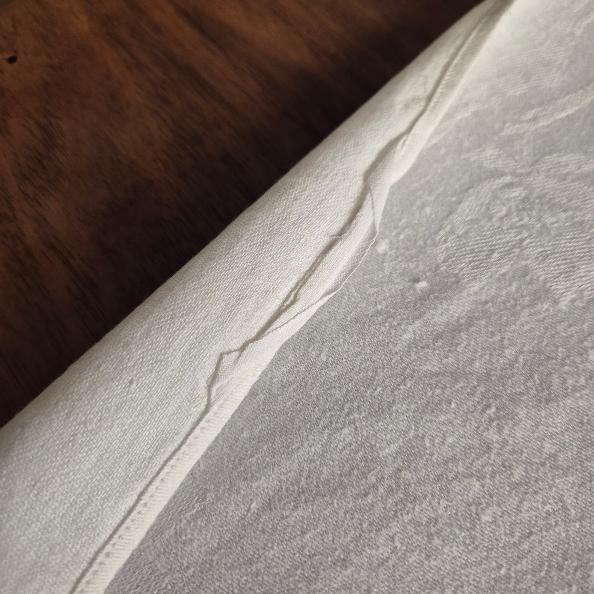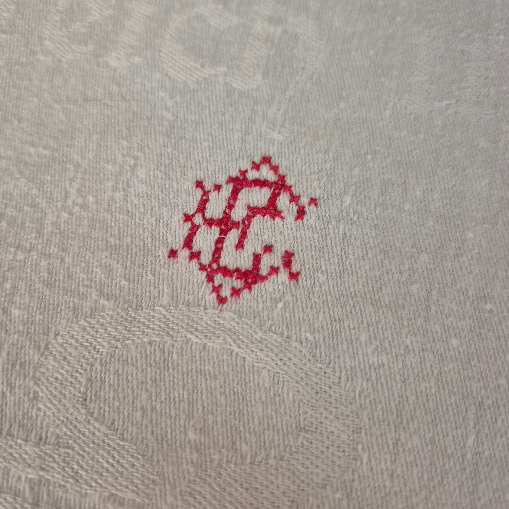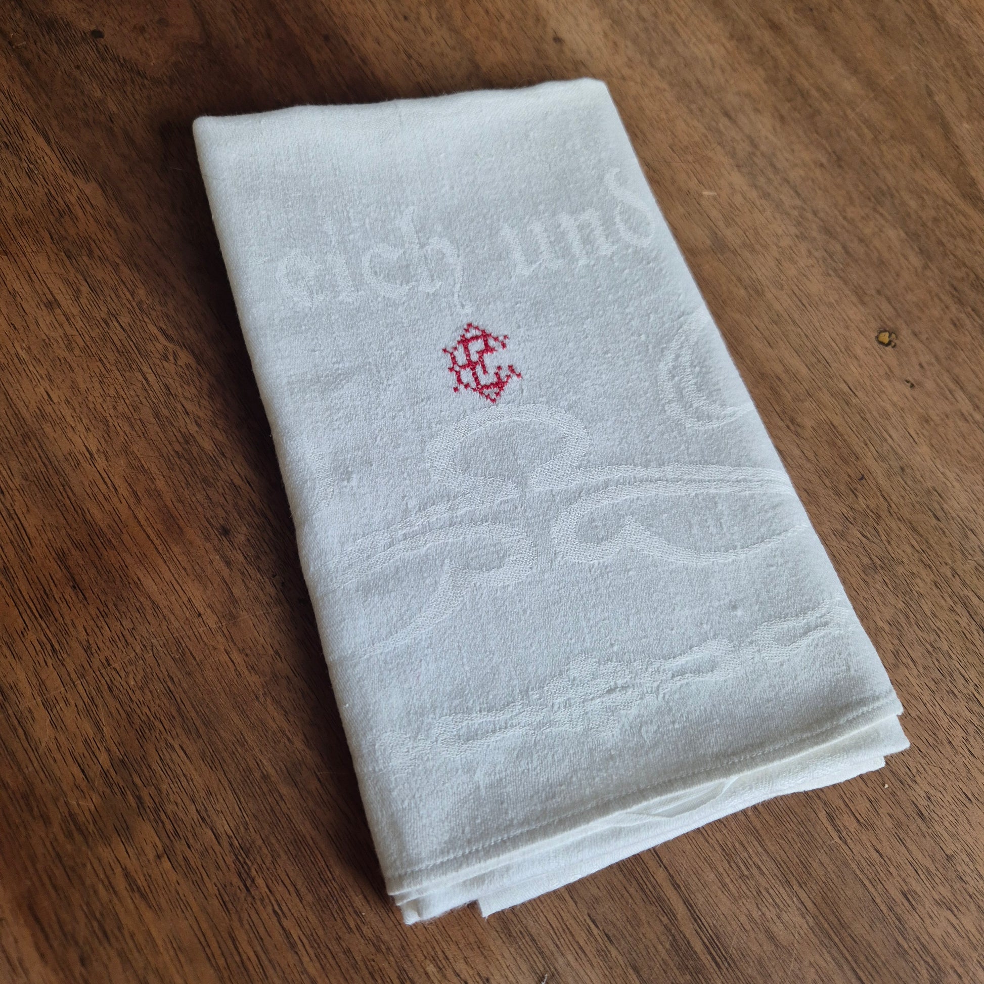 Antikes Jugendstil Küchen-&Geschirrtuch mit Spruch: "Edel sei der Mensch,hilfreich und gut" Damast weiß Baumwolle 46x100cm