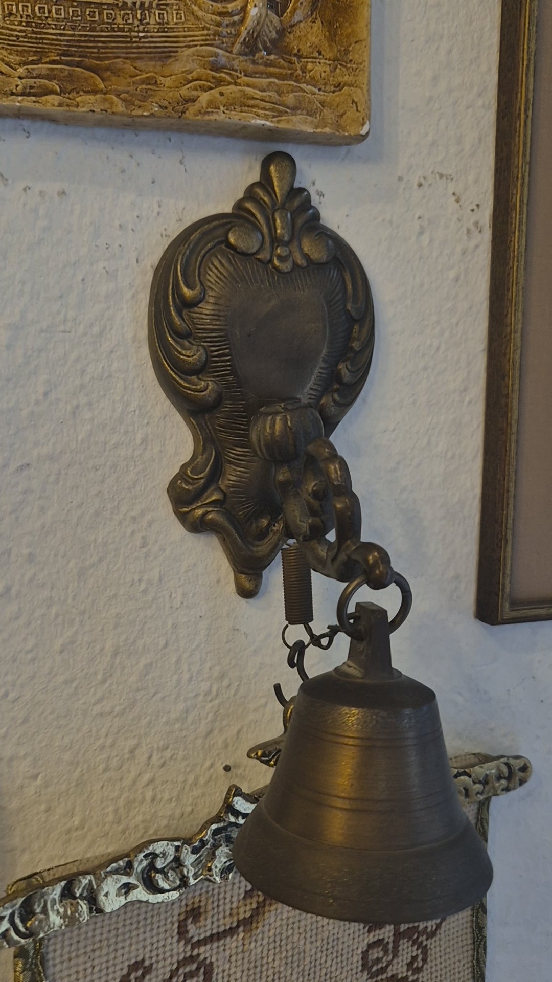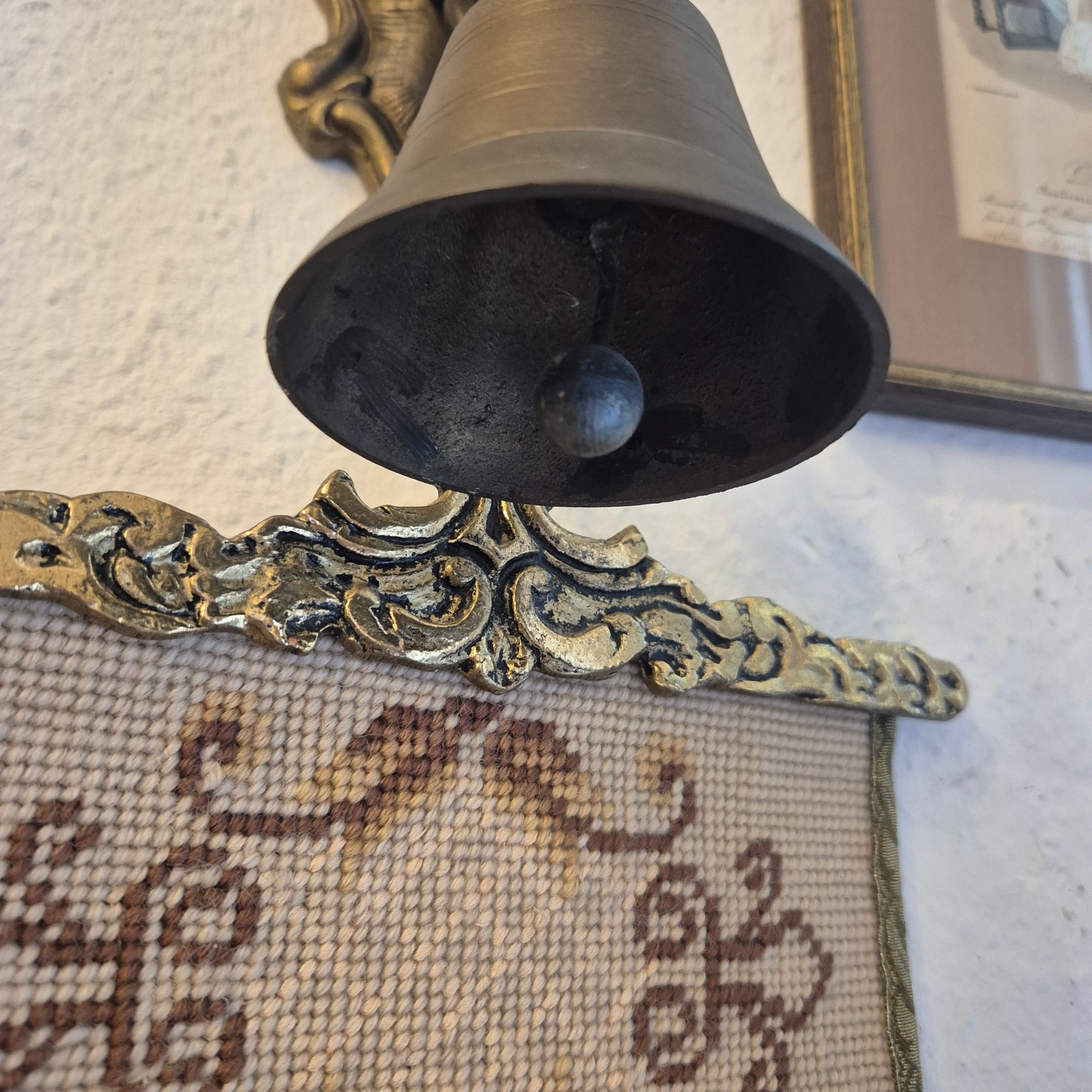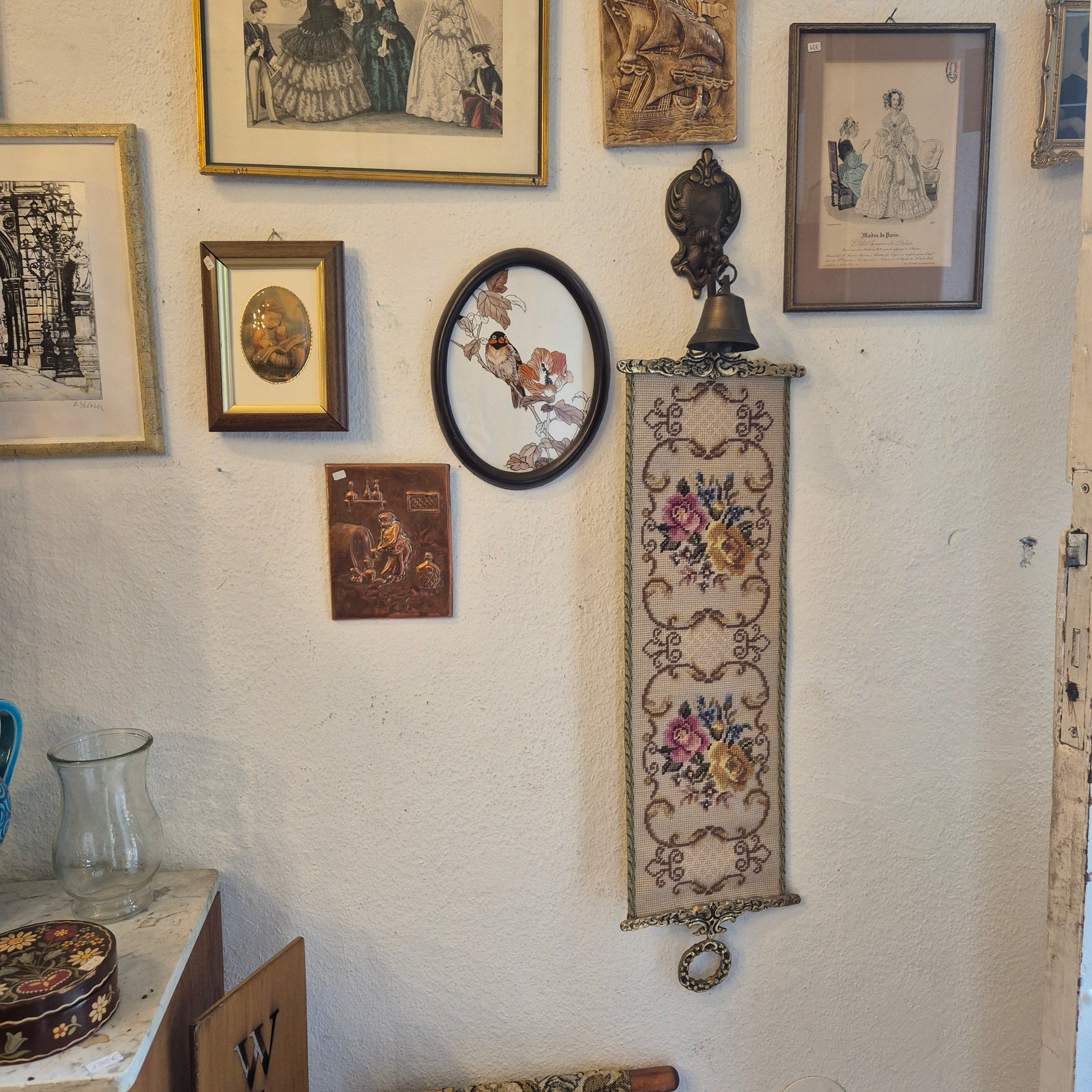 Wandbehang im Gobelin Stil echte Handarbeit & Glocke Türglöcke Tapisserie Bildwirkerei Vintage 60er Jahre